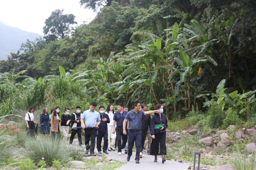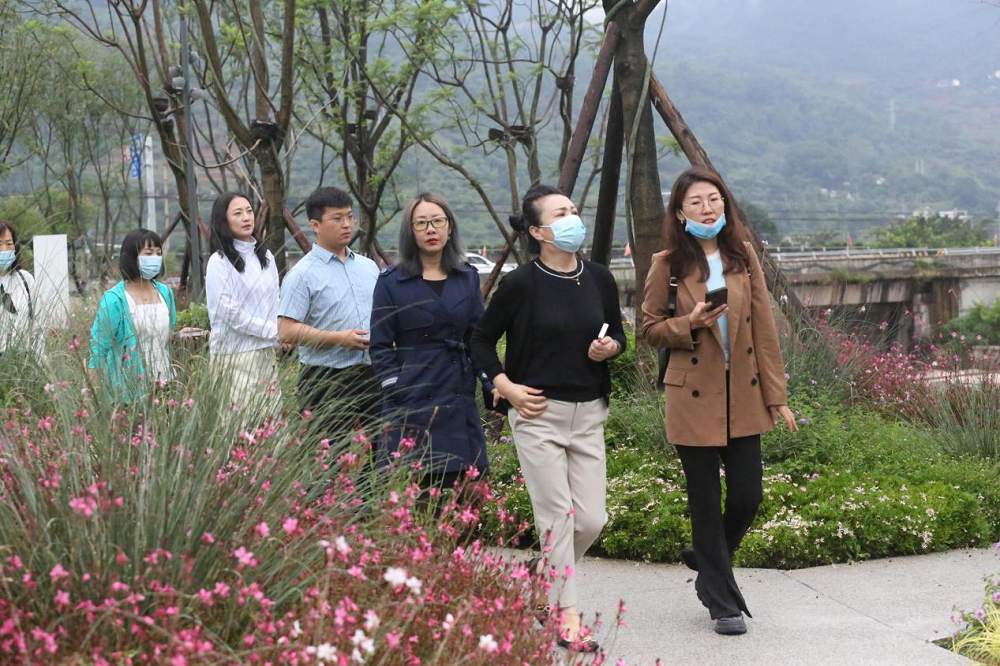 在大地公园景观步道,大家一路前行,欣赏盛开的百花,感受和煦的清风。李总向客人们详细介绍了项目景观的设计理念,花卉苗木的种类和特点等情况。